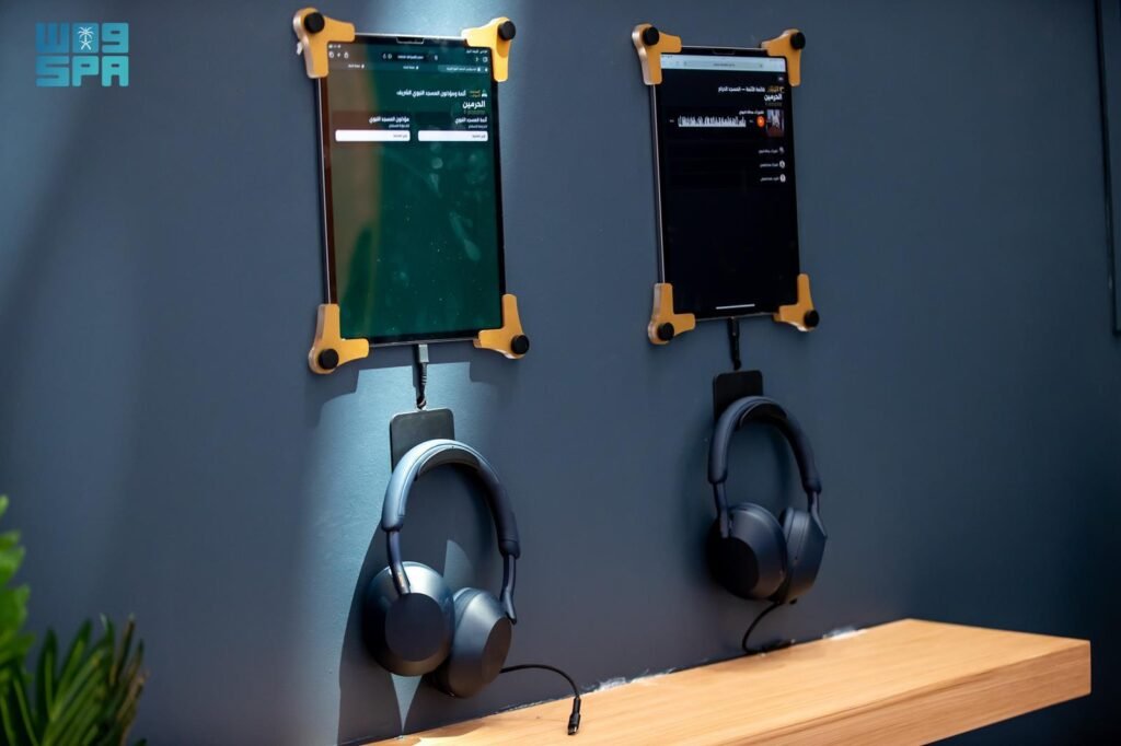 وفي محور حاسة اللمس، يتعرّف الزوار على المواد المستخدمة في أرضيات الحرمين، وفي مقدمتها رخام “تاسوس” المعروف بخصائصه الفيزيائية التي تساعد على تلطيف درجة الحرارة، إضافة إلى استعراض مراحل تطوير السجاد المستخدم، وخدمات العناية بذوي الإعاقة البصرية، بما في ذلك المصحف بلغة برايل والمصحف الإلكتروني، المتوفرين في مواقع مخصصة داخل الحرمين الشريفين.