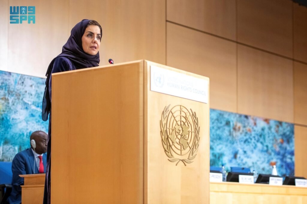 وقالت معاليها في كلمة المملكة أمام المجلس: “إن المملكة تثمن نبل أهداف مجلس حقوق الإنسان، وتؤكد أهمية تحقيقها على أرض الواقع من خلال التعاون المشترك”.