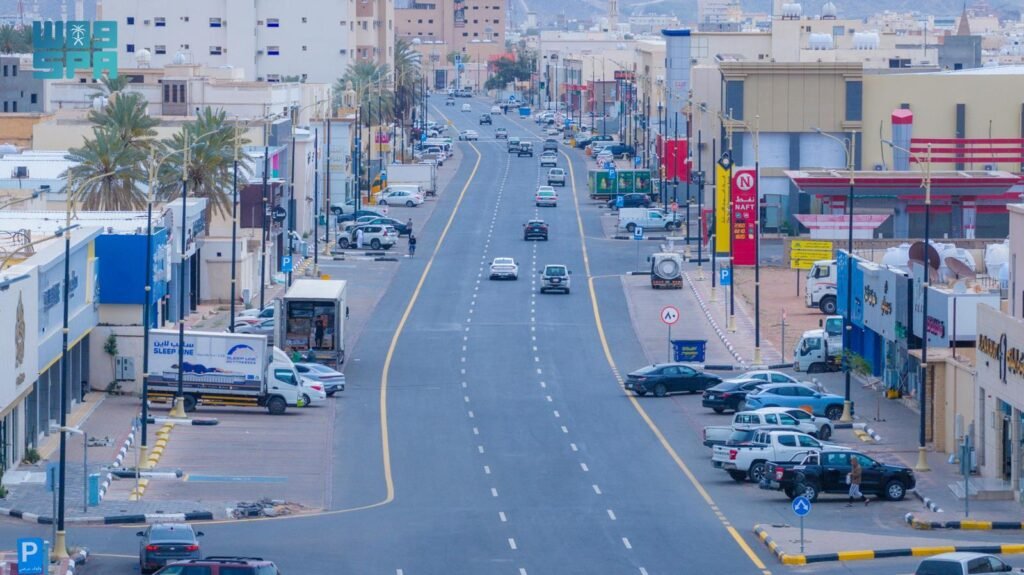 ويُعد الطريق محورًا رئيسيًا يربط بين شرق المدينة وغربها، ويمتد حتى حدود مشروع المنطقة المركزية، كما يخدم عددًا من الأحياء السكنية، ويشهد كثافة مرورية يومية، إضافة إلى احتضانه أكثر من 300 منشأة تجارية، ما يعكس أهميته الاقتصادية والتنموية.