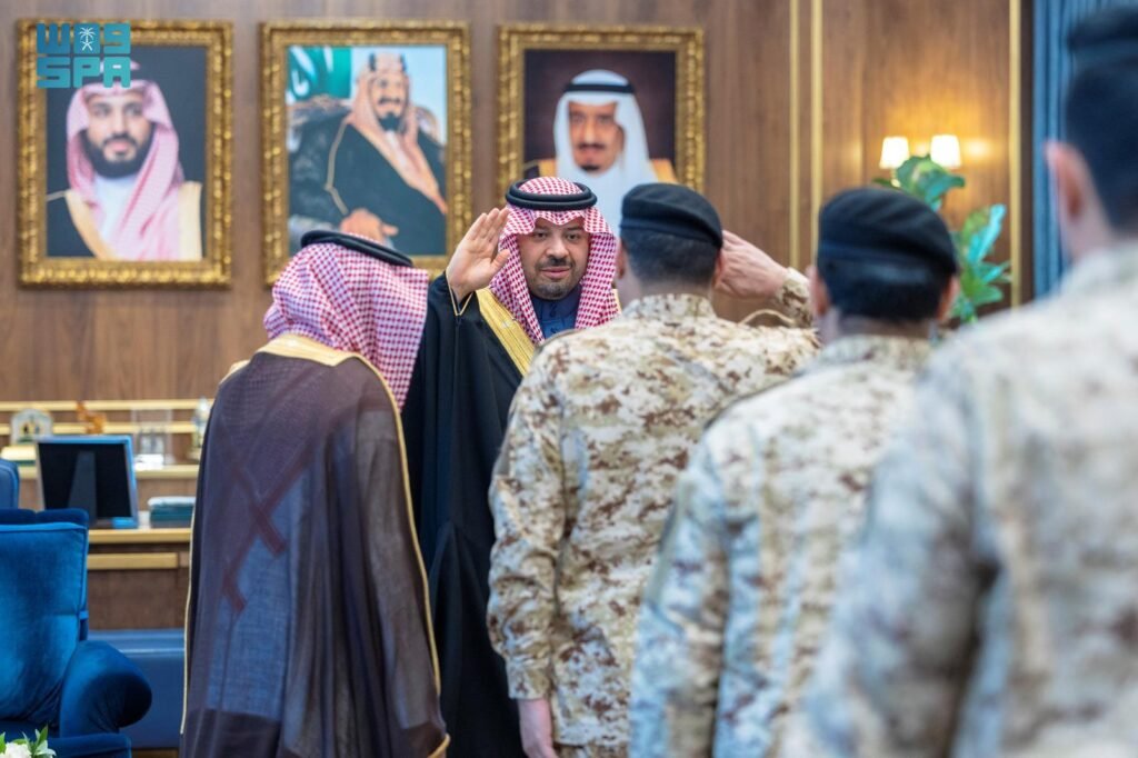 عرض الكلأمير منطقة الحدود الشمالية يستقبل أمير الفوج السابع والثلاثين بالحرس الوطني