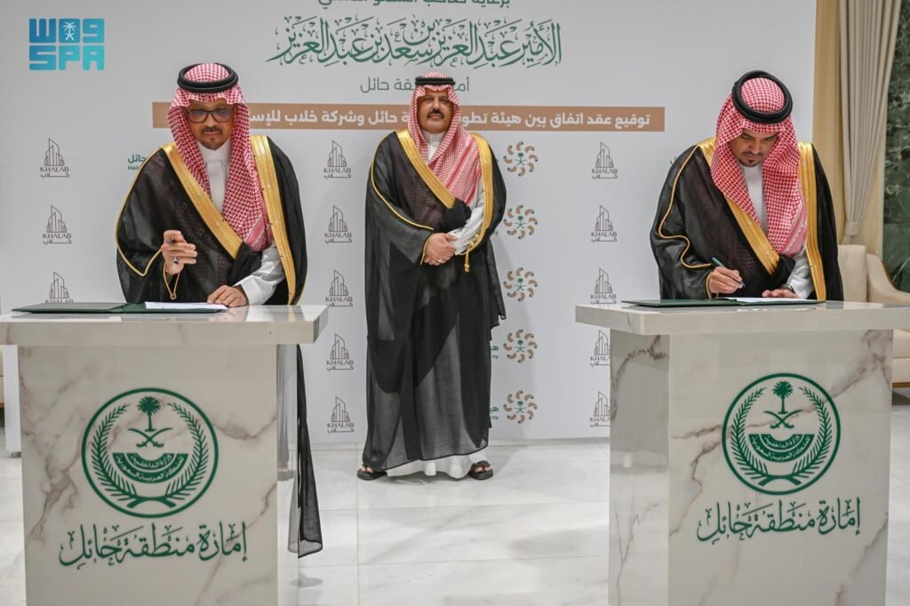رعى صاحب السمو الملكي الأمير عبدالعزيز بن سعد بن عبدالعزيز، أمير منطقة حائل بالإمارة اليوم، مراسم توقيع عقد إنشاء مجمع تعليمي متكامل في المنطقة بين هيئة تطوير منطقة حائل وشركة خلاب للاستثمار التجاري، بحضور وكيل الإمارة علي بن سالم آل عامر، والرئيس التنفيذي لهيئة تطوير المنطقة عمر بن عبدالله العبدالجبار، ورئيس مجلس إدارة شركة خلاب للاستثمار التجاري الوليد بن خالد البلطان.