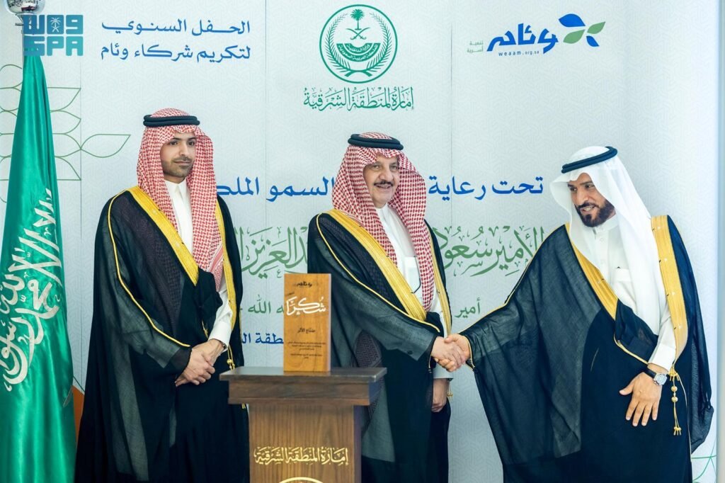 عرض الكلأمير المنطقة الشرقية يرعى حفل تكريم الشركاء والمانحين لجمعية وئام للتنمية الأسرية