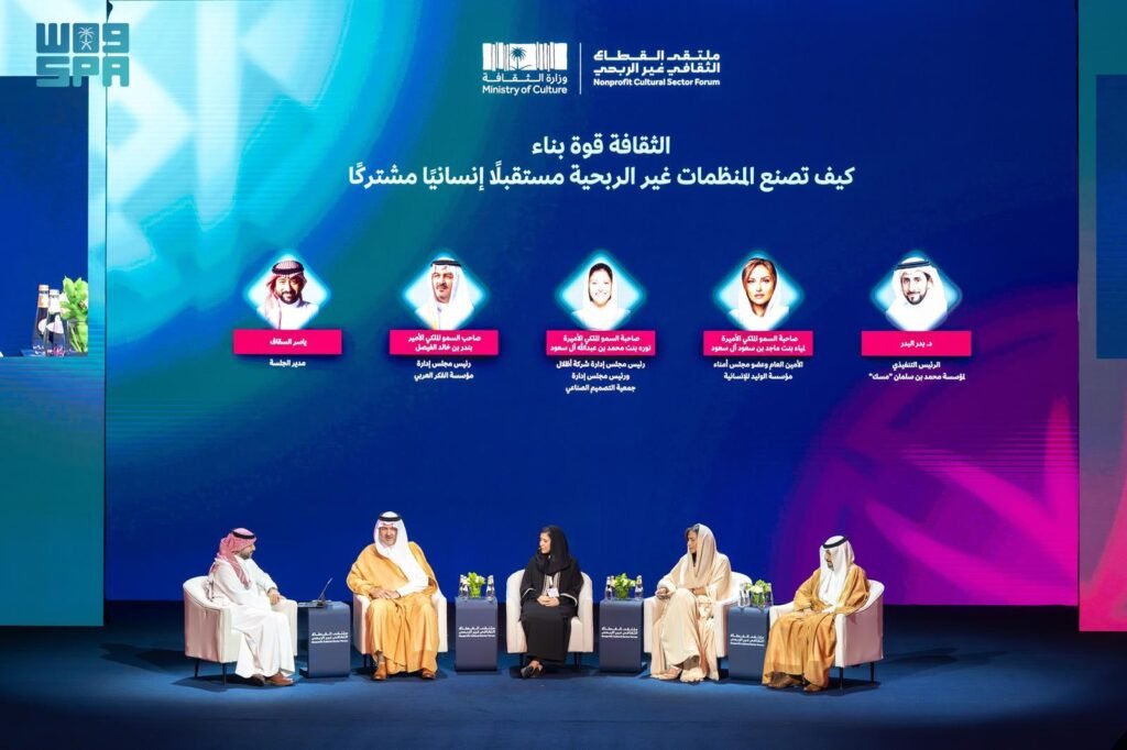 واصل ملتقى القطاع الثقافي غير الربحي أعماله من خلال الجلسة الحوارية “الثقافة قوة بناء: كيف تصنع المنظمات غير الربحية مستقبلًا إنسانيًا مشتركًا” والتي أقيمت اليوم، بمركز الملك فهد الثقافي بالرياض وشارك بها صاحب السمو الملكي الأمير بندر بن خالد بن فيصل بن عبدالعزيز رئيس مجلس إدارة مؤسسة الفكر العربي، وصاحبة السمو الملكي الأميرة نوره بنت محمد بن عبدالله رئيس مجلس إدارة جمعية فنون التراث ورئيس مجلس إدارة جمعية التصميم الصناعي، وصاحبة السمو الملكي الأميرة لمياء بنت ماجد بن سعود الأمين العام وعضو مجلس أمناء مؤسسة الوليد الإنسانية، والرئيس التنفيذي لمؤسسة محمد بن سلمان بن عبد العزيز “مسك الخيرية” الدكتور بدر البدر.