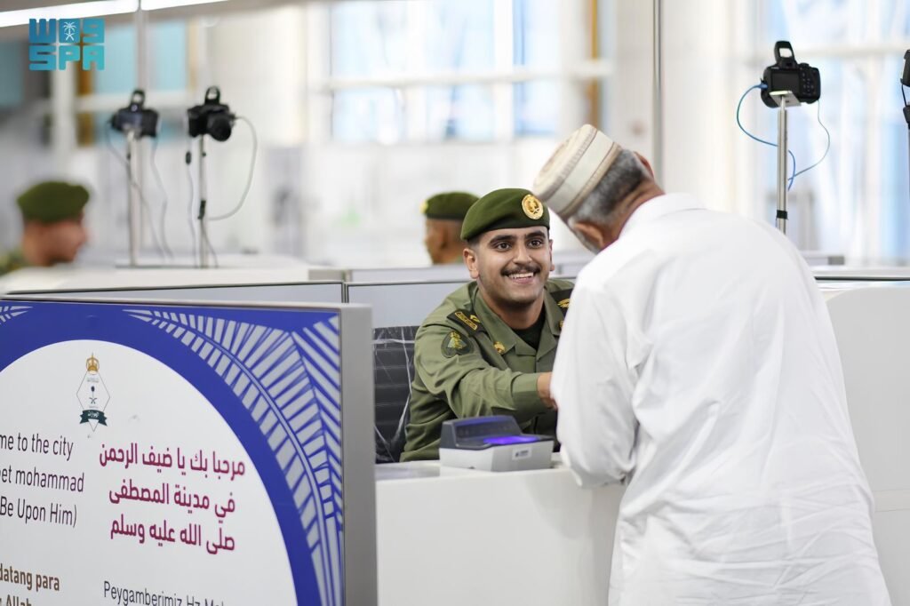 استقبلت الجوازات بمطار الأمير محمد بن عبدالعزيز الدولي بالمدينة المنورة أولى رحلات ضيوف الرحمن من جمهورية باكستان الإسلامية القادمين لأداء فريضة الحج لهذا العام 1447هـ، وأنهت إجراءاتهم بيسر وطمأنينة.