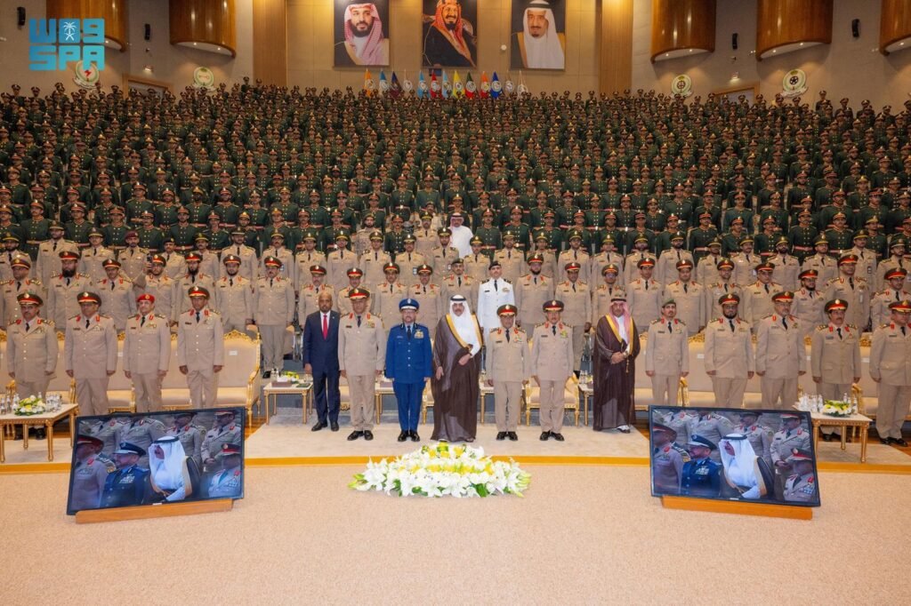 وكرّم سمو نائب وزير الدفاع الطلبة المتفوقين، وتقلّد الخريجون رتبَهم العسكرية، والتُقطت الصورة التذكارية لسموه مع الخريجين، واختُتم الحفل بعزف السلام الملكي.