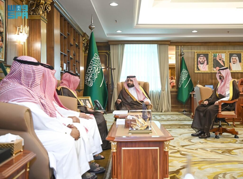 استقبل صاحب السمو الملكي الأمير محمد بن عبدالعزيز بن محمد بن عبدالعزيز أمير منطقة جازان، بحضور صاحب السمو الأمير ناصر بن محمد بن عبدالله بن جلوي، نائب أمير المنطقة، في مكتبه بالإمارة اليوم، وكيل الإمارة المساعد للشؤون التنموية المهندس محمد الأحمري، وذلك لتسليم سموه تقرير وكالة الشؤون التنموية لعام 2025م.