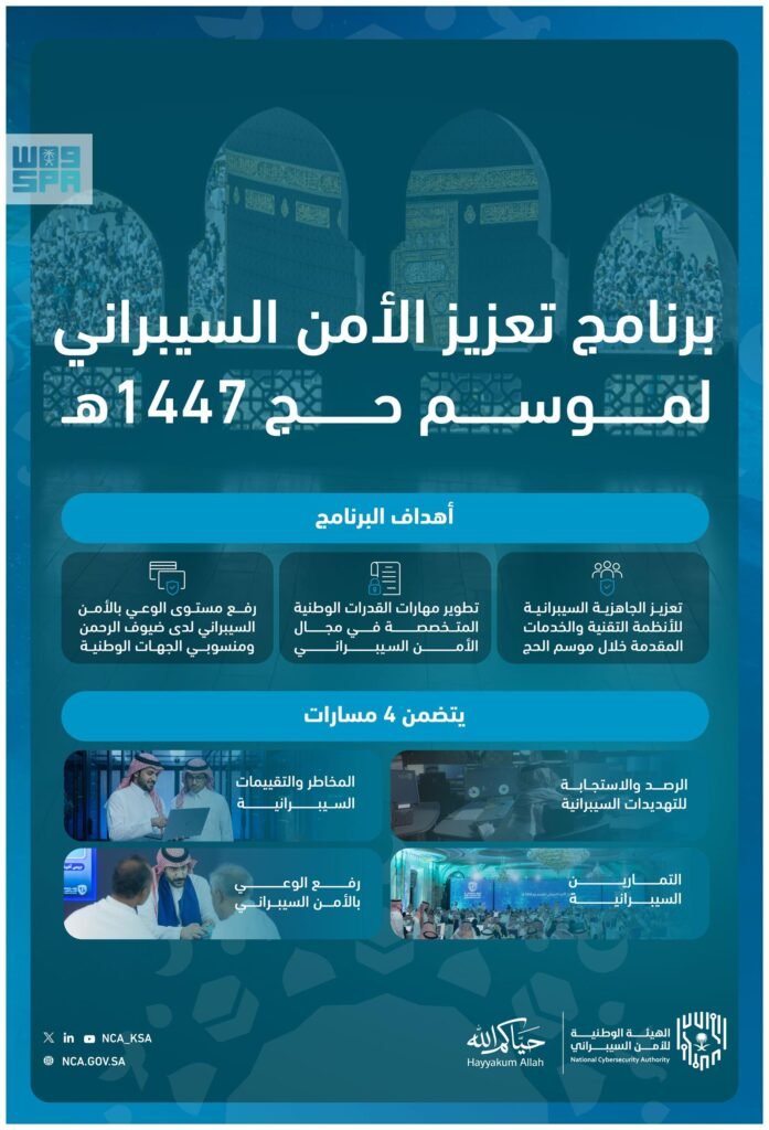 الهيئة الوطنية للأمن السيبراني تواصل تنفيذ «برنامج تعزيز الأمن السيبراني» لموسم حج 1447هـ