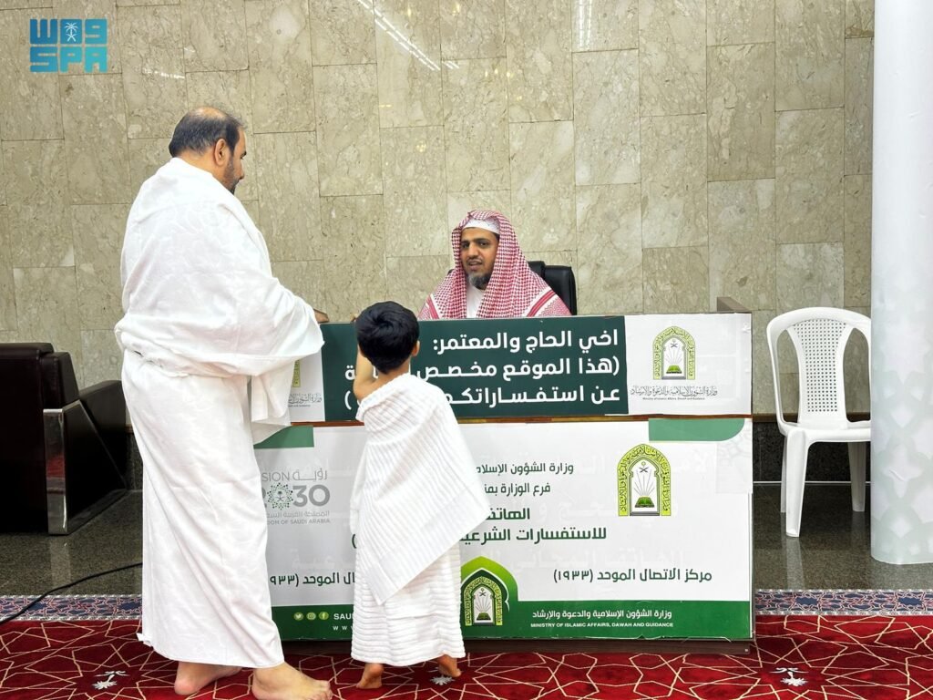 تواصل وزارة الشؤون الإسلامية والدعوة والإرشاد، ممثلة بفرعها في منطقة مكة المكرمة، جهودها التوعوية والإرشادية لخدمة حجاج بيت الله الحرام، عبر توزيع المطبوعات التوعوية والإرشادية على الحجاج القادمين إلى ميقاتي وادي محرم وقرن المنازل، واللذان يُعدان من أبرز المواقيت الشرعية التي يقصدها الحجاج القادمين إلى مكة المكرمة وذلك ضمن جهودها خلال موسم حج عام 1447هـ، لخدمة ضيوف الرحمن وتبصيرهم بأحكام المناسك وتيسير أدائهم للعبادة بيسر وسهولة.