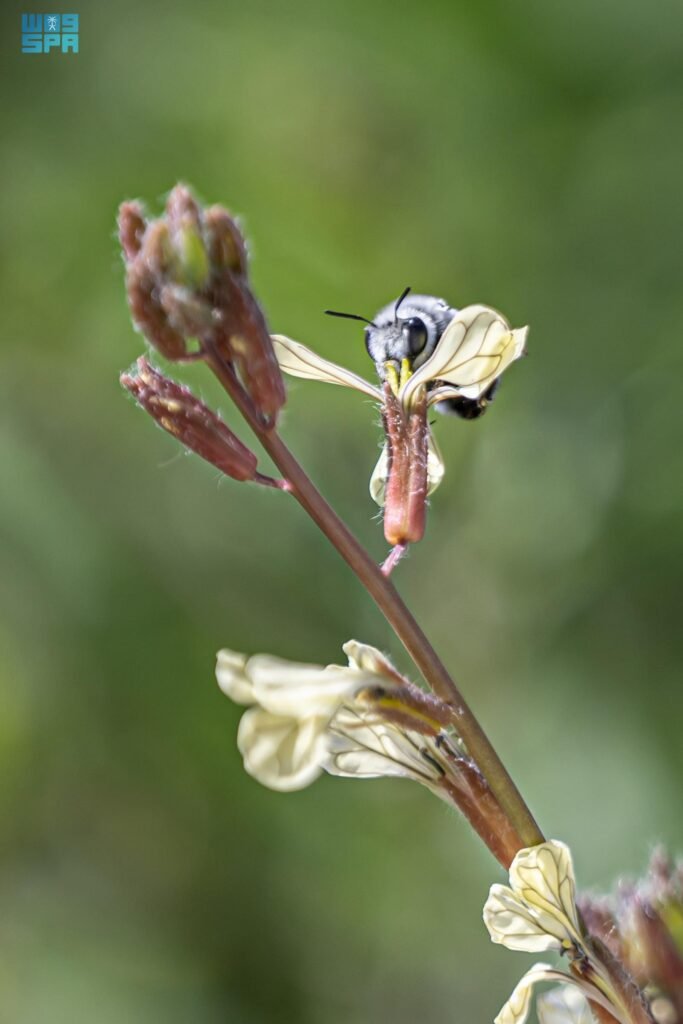 ويتميّز هذا النوع، الذي وثّقته عدسة وكالة الأنباء السعودية، بشعيرات كثيفة على أرجله الخلفية تُستخدم بكفاءة في جمع حبوب اللقاح، مما يجعله من الملقِّحات النشطة التي تؤدي دورًا مهمًا في دعم التنوع النباتي واستدامة النظم البيئية.