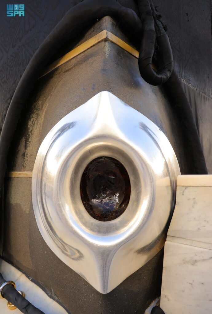 ويتكوّن الحجر الأسود من عدة أجزاء أحيطت بإطارٍ من الفضة الخالصة تثبيتًا وحفظًا، وقد تعاقبت عبر العصور أعمال ترميم دقيقة لصيانته، بما يضمن استقراره وسلامته ضمن بناء الكعبة المشرفة، ويُلاحظ الطائفون عناية خاصة بمحيطه، سواء من حيث النظافة الدائمة أو التنظيم الميداني الذي يتيح أداء الشعيرة بسكينةٍ وانسيابية.