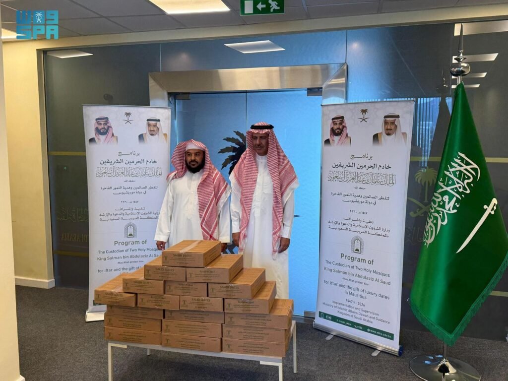 نفذت وزارة الشؤون الإسلامية والدعوة والإرشاد برنامجي خادم الحرمين الشريفين لتوزيع التمور وتفطير الصائمين في موريشيوس، وذلك خلال حفل أقيم في مقر سفارة المملكة في موريشيوس بحضور سفير خادم الحرمين الشريفين لدى موريشيوس فايز بن مشل التمياط.