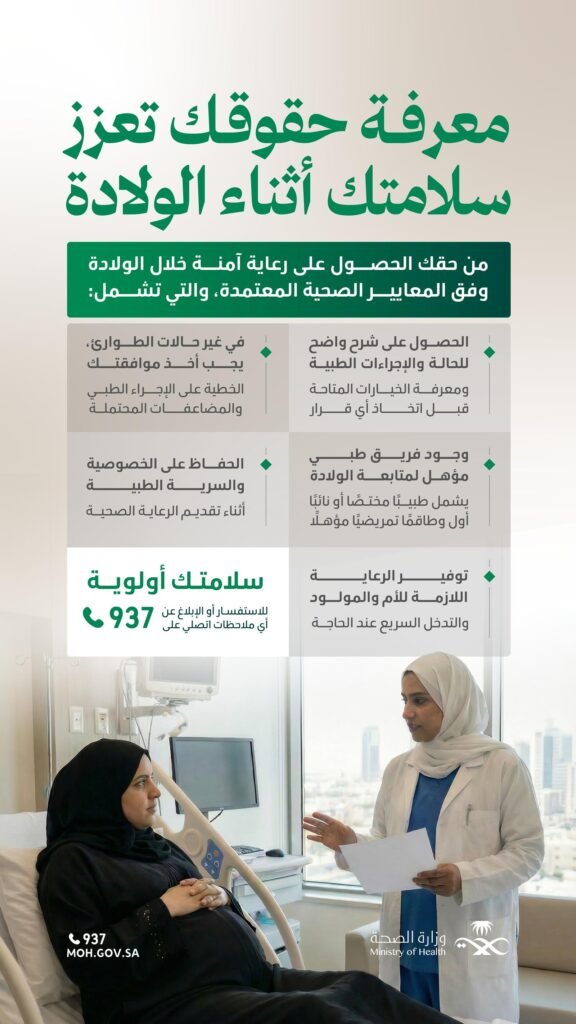 انطلاقًا من دورها الرقابي والإشرافي، أطلقت وزارة الصحة حملتها الرقابية لتعزيز سلامة الأم أثناء الولادة، التي تستهدف أقسام الولادة في المنشآت الصحية، لضمان الالتزام بالاشتراطات والأنظمة المعتمدة في المملكة، وضمان جاهزية المنشآت الصحية للتعامل مع مختلف حالات الولادة، بما يعزز سلامة الأم والطفل ويرفع جودة الرعاية المقدمة.