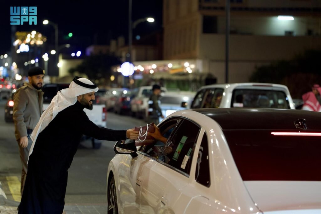 وجاءت مبادرة توزيع الهدايا في المواقع الحيوية بمدينة الباحة والمحافظات التابعة لها، متزامنةً مع البرامج الاحتفالية التي شهدتها المنطقة، بما في ذلك تزيين الشوارع والميادين بالأعلام الوطنية والإنارة الجمالية، وتركيب اللوحات التعريفية والشاشات الإلكترونية التي تحمل شعار يوم التأسيس وهويته البصرية.