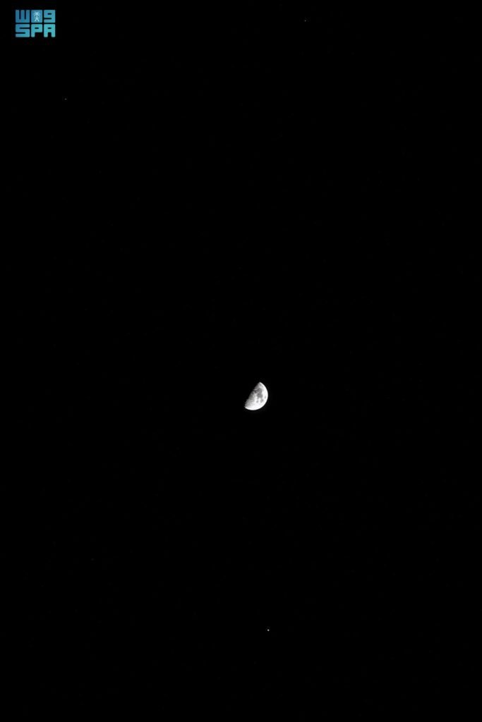 رُصد في سماء منطقة الحدود الشمالية مساء اليوم اقترانٌ فلكيٌّ لافت، جمع القمر بكوكب المشتري، إلى جانب نجمَي رأس التوأم “المقدم” و”المؤخر”، في مشهد بديع جذب أنظار المهتمين برصد الظواهر الفلكية وهواة التصوير.