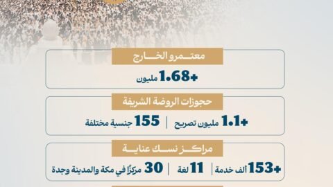 أعلنت وزارة الحج والعمرة أن عدد معتمري الخارج القادمين إلى المملكة خلال شهر رمضان تجاوز (1.68) مليون معتمر، في مؤشر يعكس تنامي الإقبال على أداء العمرة،…
