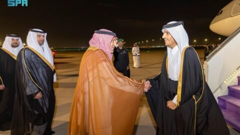 وصل إلى المملكة، اليوم، معالي الشيخ محمد بن عبدالرحمن بن جاسم آل ثاني رئيس مجلس الوزراء وزير خارجية دولة قطر. وكان في استقباله لدى وصوله مطار…