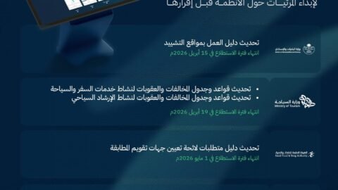 طرحت المنصة الإلكترونية الموحدة لاستطلاع آراء العموم والجهات الحكومية (استطلاع) التابعة للمركز السعودي للتنافسية والأعمال، 14 مشروعًا ذا صلة بالشأن الاقتصادي والتنموي، بالتعاون مع 10 جهات…