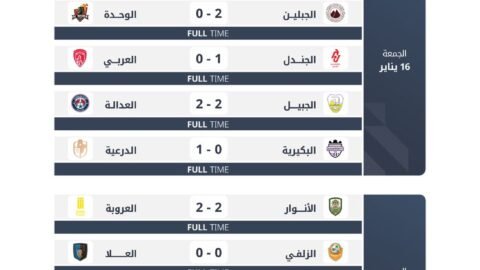 اختُتمت مساء السبت منافسات الجولة السابعة عشر من دوري يلو لأندية الدرجة الأولى للمحترفين، بنتائج عززت من صدارة أبها للترتيب العام، مع استمرار مطاردة الدرعية، فيما…