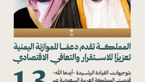 المملكة تقدم 1,3 مليار ريال سعودي لدعم الموازنة اليمنية وتغطية النفقات التشغيلية والرواتب