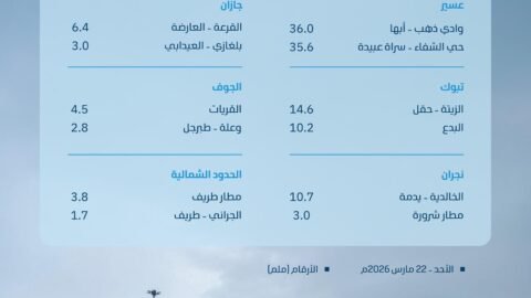 سجّلت منطقة عسير أعلى معدلٍ لكميات هطول الأمطار في المملكة، بـ36,0 ملم في وادي ذهب بمحافظة أبها، كما سجّل حي الشفاء بسراة عبيدة 35.6 ملم، ومطار…
