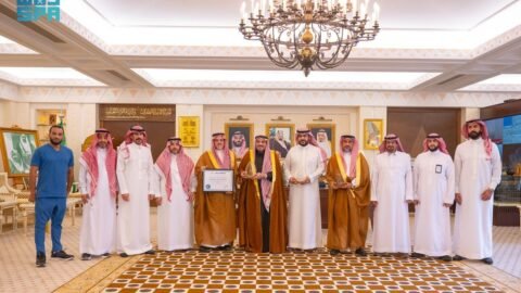 كرّم صاحب السمو الملكي الأمير محمد بن عبدالعزيز بن محمد بن عبدالعزيز أمير منطقة جازان، في مكتبه بالإمارة اليوم، استشاري جراحة ومناظير الجيوب الأنفية الدكتور إبراهيم صميلي، بمناسبة…