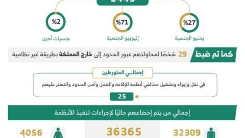 أسفرت الحملات الميدانية المشتركة لمتابعة وضبط مخالفي أنظمة الإقامة والعمل وأمن الحدود، التي تمت في مناطق المملكة كافة، وذلك للفترة من 07/ 10/ 1447هـ الموافق 26/…