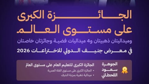 حقق طلبة المملكة إنجازًا عالميًا متميزًا في معرض جنيف الدولي للاختراعات 2026، ضمن مشاريع التعليم العام (أقل من 18 سنة) في مسار Young Talent. وفازت الطالبة…