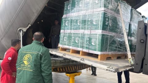 وصول الطائرة الإغاثية السعودية الـ 82 لإغاثة الشعب الفلسطيني في قطاع غزة التي يسيّرها مركز الملك سلمان للإغاثة